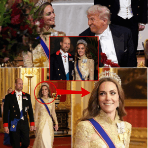 Kate Middleton stunned in a full-length golden gown as she attended a state banquet for Donald Trump and his wife Melania on Wednesday evening. The US…