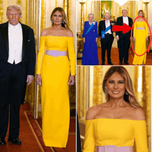 Melania Trump turned heads as she attended a state banquet at Windsor Castle in a yellow, off-the-shoulder gown on Wednesday evening. But as images surfaced of…