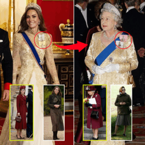 Princess Kate stepped out in a golden lace gown that echoed one of the late Queen’s most iconic looks. The Princess of Wales…