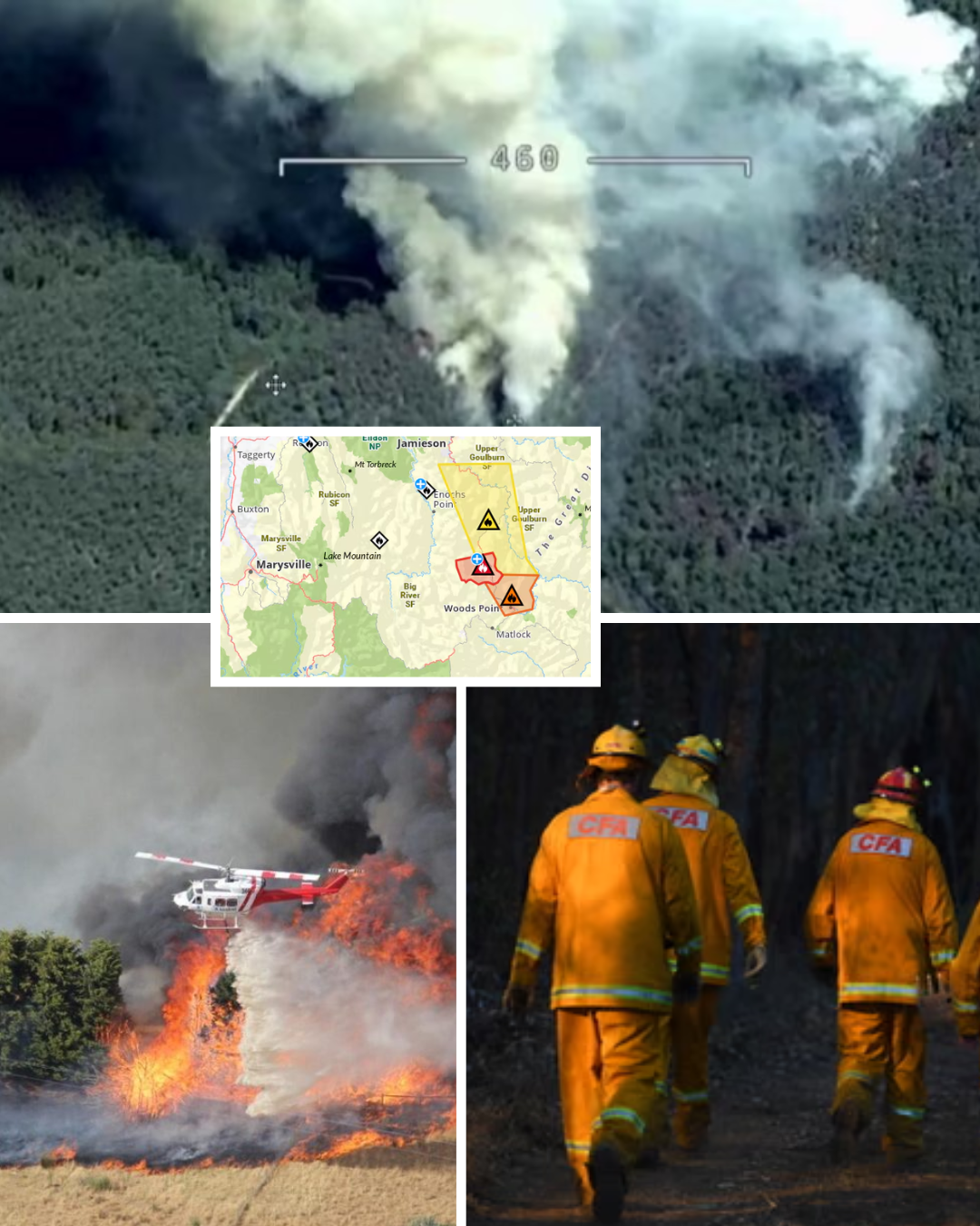 Residents near Gaffneys Creek have been told by authorities to leave immediately, while a Watch and Act warning is in place for residents near Woods Point.