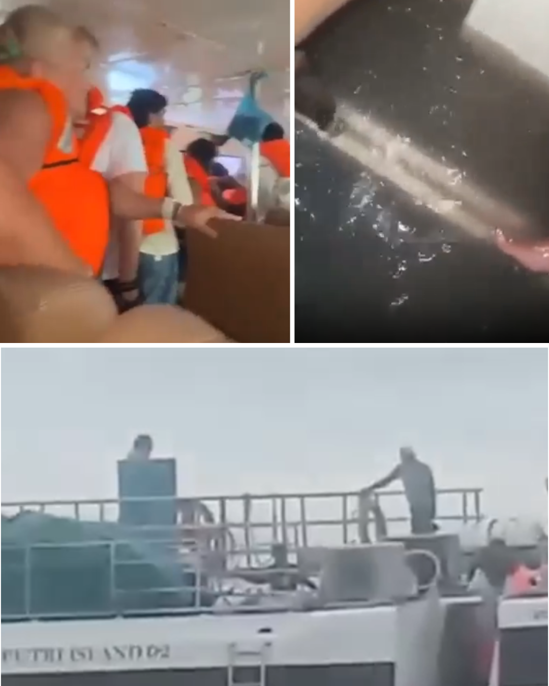 In a shocking video from onboard the vessel, passengers were seen wearing bright orange life jackets while queuing to escape the rising water.