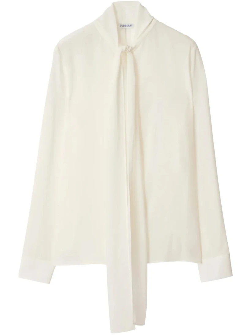 We think it might be this blouse from Burberry. (I had assumed it was a Burberry blouse, and saw that @MiddletonMaven had posted the same theory). Perhaps in white (the blouse below is an off-white or cream).