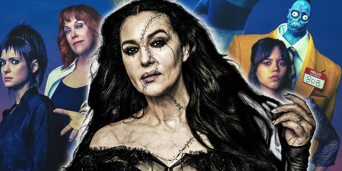 Beetlejuice Beetlejuice goes a step further by providing its own vengeful ghost, played by Monica Bellucci and bearing an unmistakable resemblance to several similar figures in Bava’s films. They were married in life, only for her to poison him just before he chopped her up with an ax. She staples herself back together early in the film and comes for him, devouring any soul she meets along the way. It’s played very tongue in cheek, in keeping with the movie’s overall tone, but it’s hard to miss Bava’s hand in the character. Bellucci implicitly understands the assignment, and keeps her ghost weird and menacing even as the rest of the film riffs on it. She might have stepped straight off the screen from the likes of Black Sunday, and the movie knows it.